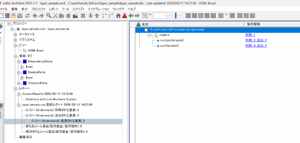 修正されたソースコードをUnderstand、Lattixで再解析した結果が以下になります。