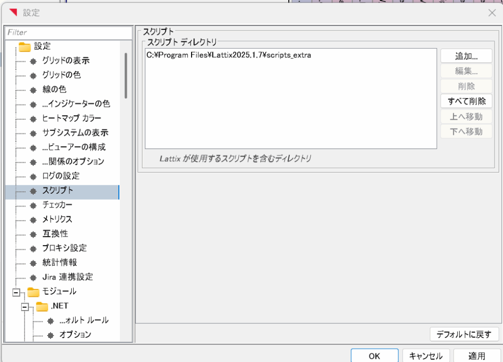 行番号付きアーキテクチャルール違反レポートのスクリプトはLattix 2025ではextraスクリプトとして、以下に配置されています。