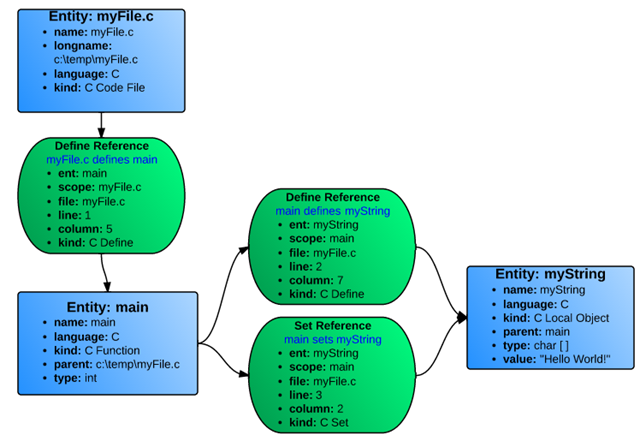 一方、参照には、それに関連付けられたエンティティと、参照が発生するファイル、行、列、および参照の種類の両方が含まれます。
