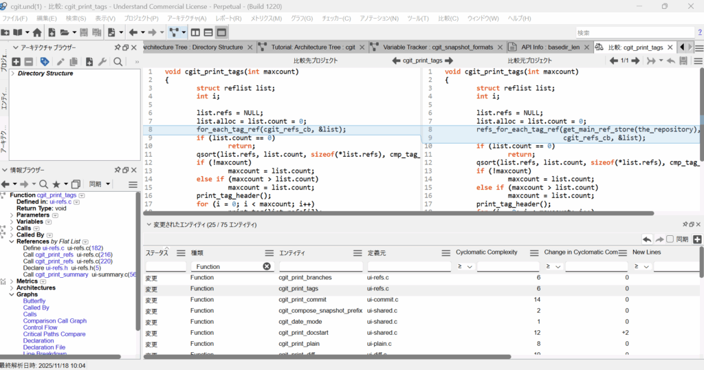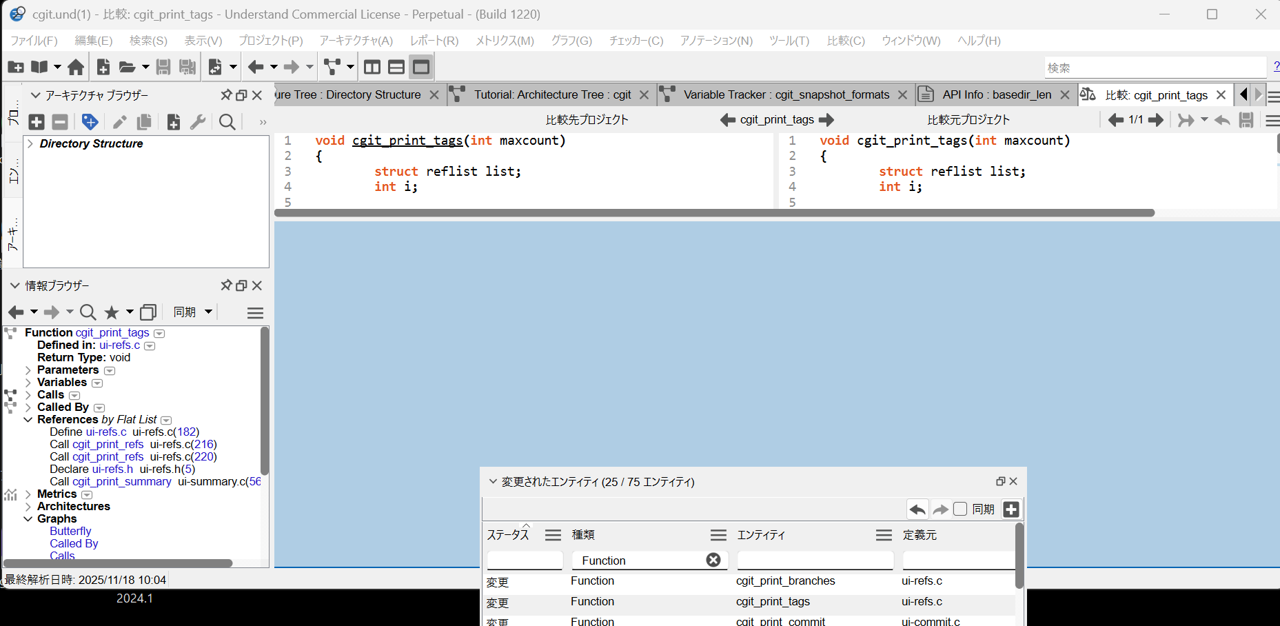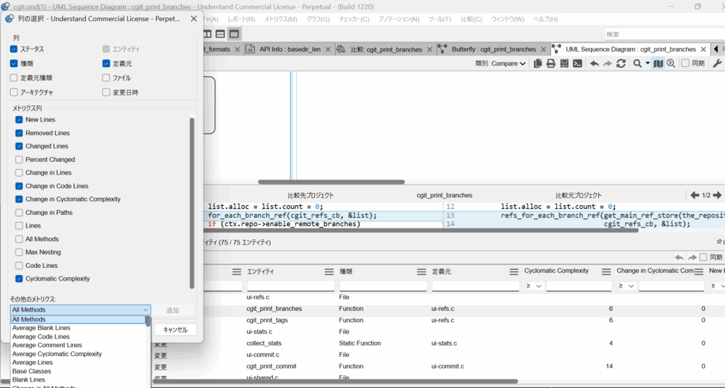 Understandでプロジェクト比較をおこなうメリットは、プロジェクト比較結果から直接Understandの解析情報を利用できる点にあります。