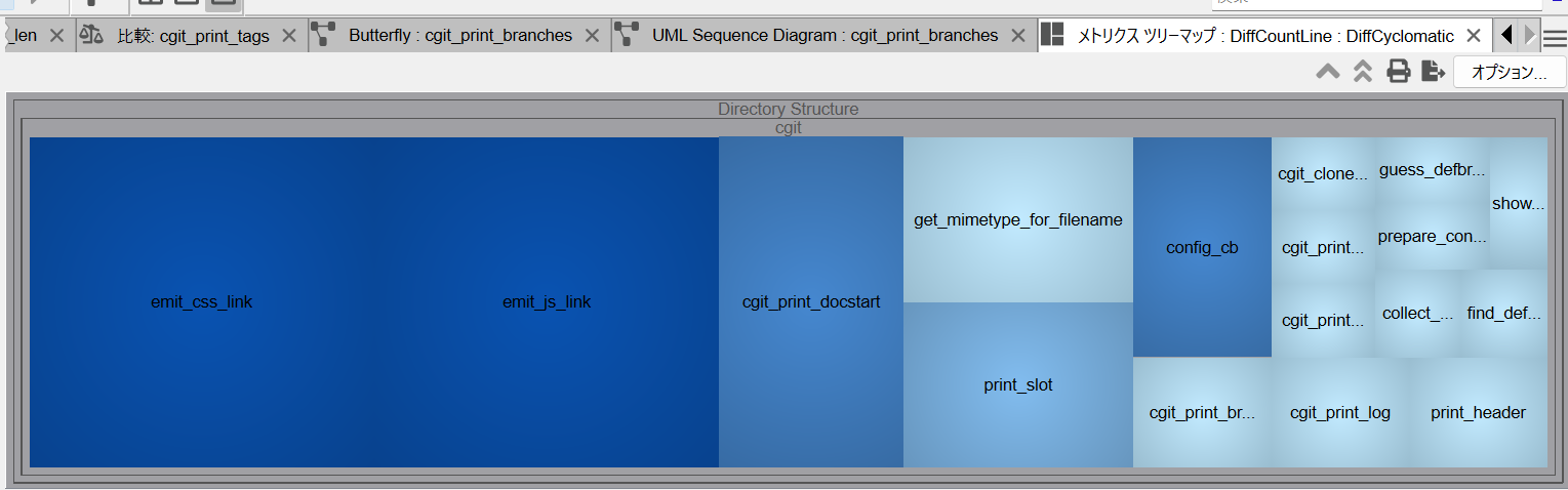 差分となるコード規模を視覚的に理解したい場合にはツリーマップでの表示もお勧めです。